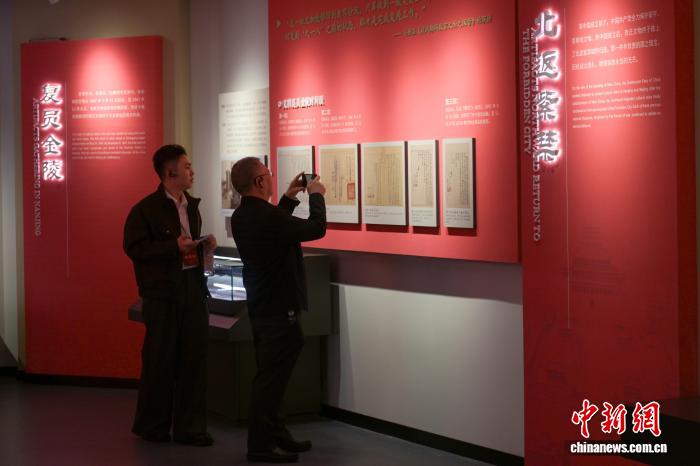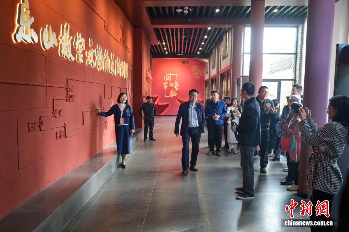 图为参观者在乐山故宫文物南迁陈列馆内拍照留念。中新社记者 刘忠俊 摄